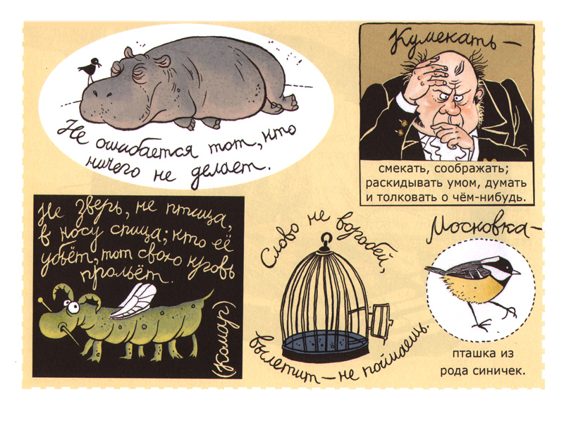 Вместе с автором книги мы переносимся в XIX век и летним днем пытаемся представить тот самый морозный вечер, когда молодой мичман Владимир Даль мерз в казенной шинели в санях и услышал самое первое слово будущего словаря. Сцена описана так живо, что дети завороженно вслушиваются в это странное «замолаживает» и еще до ответа ямщика пытаются угадать, что же оно означает: «Теплеет?..» Но бурная жизнь Даля уже разворачивается перед нами дальше. Вот он на фронте. Тут-то и выясняется, что материал для своего словаря Даль собирал не в путешествиях, как сначала подумали мои туристы, а в воинских частях. Угадать, на чем доктор перевозил свои записки, конечно, не смог никто: «На осле? На телеге? На фуре?» (видимо, с точки зрения некоторых ребят в XIX веке фуры были рядовым явлением, и размер рукописного словаря как раз им соответствовал). Верблюд, конечно, всех поразил, а о его злоключениях в турецком плену все слушали, затаив дыхание.