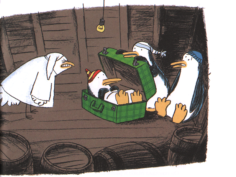 Пингвины издавна «провоцировали» на разговоры о религии. Достаточно вспомнить роман Анатоля Франса «Остров пингвинов», где близорукий святой принял пингвинов за людей и окрестил их. Но это для взрослых. А вот «Ковчег отходит ровно в восемь» немецкого драматурга и актера Ульриха Хуба как раз для детей. Эта невероятно смешная и трогательная книга – современное богословие для маленьких, причем любых – верующих и неверующих, с религиозными родителями или с теми, кого вопросы веры особенно не волнуют. Да и твердокаменные атеисты, пожалуй, тоже с удовольствием почитают эту книжку детям. Она умудряется говорить о чем-то своем и с теми, и с этими. И как всякая хорошая детская книжка, она написана немножечко и для родителей.