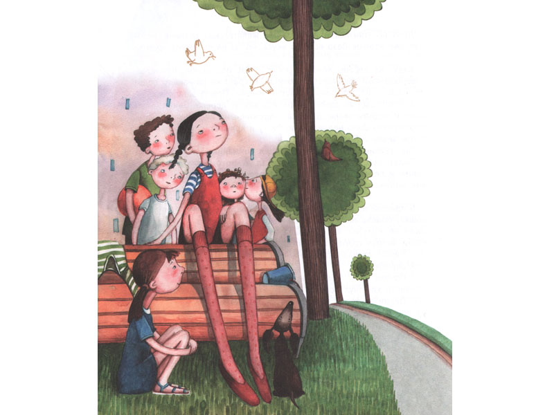 И вся эта исполненная драматизма детская реальность, увиденная с помощью писательского «увеличительного стекла», остроумно поддержана иллюстрациями, слегка похожими на отражения в кривых зеркалах. Вгляд художника оставляет место для юмора – и это как-то правильно смягчает напряженный рассказ.