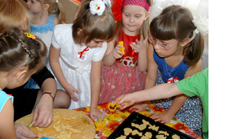 После того как все команды побывали на каждой из станций, «пропитались» атмосферой творчества и успешно прошли все испытания, пришло время собраться за общим столом. Зарина Раджабовна приготовила тесто для печенья «по рецепту Кнопочки» – мы стряпали печенье для наших мам и пап и были очень счастливы! А потом пришел черед праздничных подарков и первых «хваленок» за чудесную командную работу.