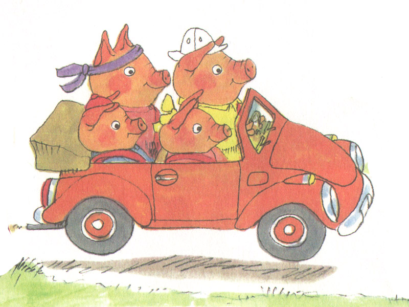 Сюжет в книжке простой: семья свинок отправляется на пикник. Едут на машине. В общем-то, всё. Но сюжет тут далеко не главное.