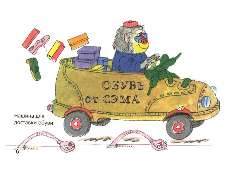 И, что самое интересное, в книжке огромное количество машин. От реальных, вроде скорой помощи, до совсем фантазийных – например, автобашмака, который развозит обувь, или тыквомобиля.