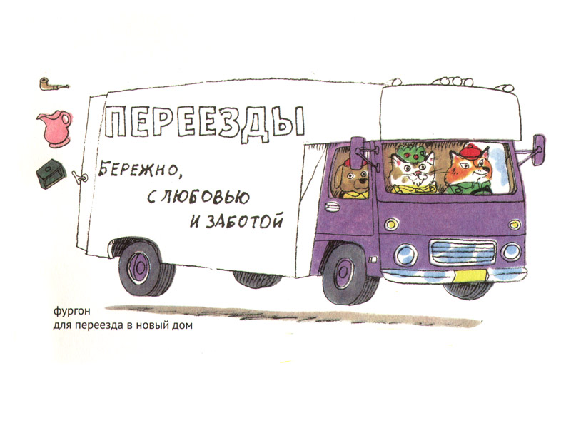 В общем, «Книжка про машинки» – это отличный повод о чем-нибудь поговорить с ребенком. Там множество «якорей». Например, у машины, которая развозит лекарства, на крыше огромная ступка и пестик. Можно объяснить ребенку, почему так, что это за предметы. А недавно я спросил у Кузьмы, показав на грузовик с сеном, знает ли он, куда эта машина везет сено?
