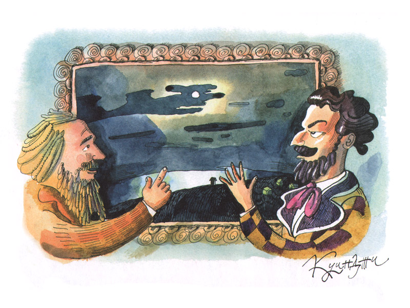 И все же самое интересное для девочек – картины художников, друзей Менделеева. Мы рассматриваем репродукции его портрета кисти Репина и «Лунную ночь на Днепре» Куинджи, которые упомянуты в книге. Но сильнее всего впечатляет факт, что Менделеев был семнадцатым ребенком в семье. Одно слово – девчонки!