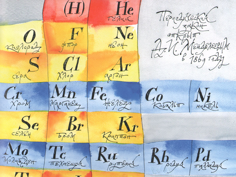Когда книга заканчивается, мы, наконец, рассматриваем легендарную таблицу, находим на ней 105-й элемент (Дубний) и вспоминаем, что имя Менделеева носит у нас в городе набережная Волги. В одном из выпусков журнала Объединенного института ядерных исследований есть фрагмент таблицы, где цветом выделены те элементы, которые синтезированы у нас...