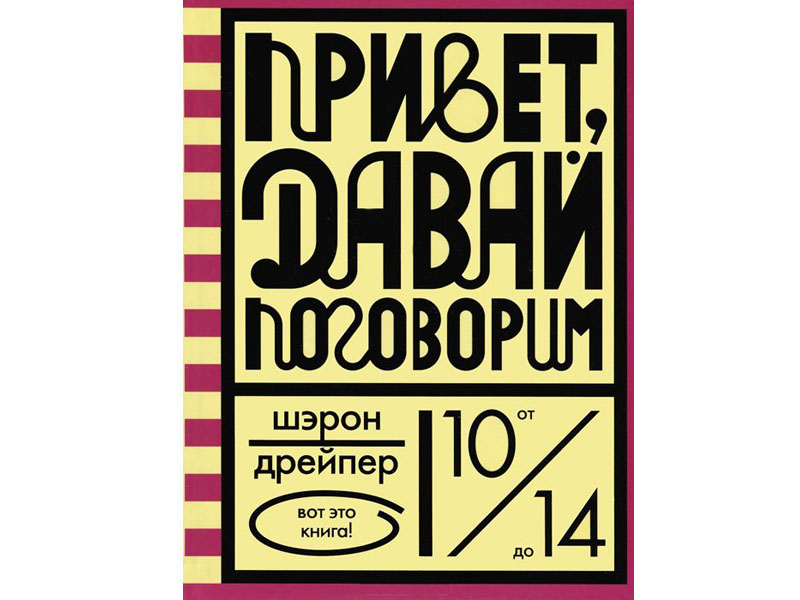 Есть одна замечательная книга, которую не хотелось бы оставить без внимания – «Привет, давай поговорим». Это воистину шедевр американской писательницы Шерон Дрейпер. Перед рассказом о самой книге я хотела бы упомянуть, что прообраз главной героини – дочка писательницы, больная ДЦП. И мне кажется, что эта книга, где повествование ведется от лица девочки, страдающей тяжелым заболеванием, серьезно ограничивающим ее возможности, помогла не только ее читателям, но и писательнице лучше понять свою дочурку. Книга очень трогательная.
