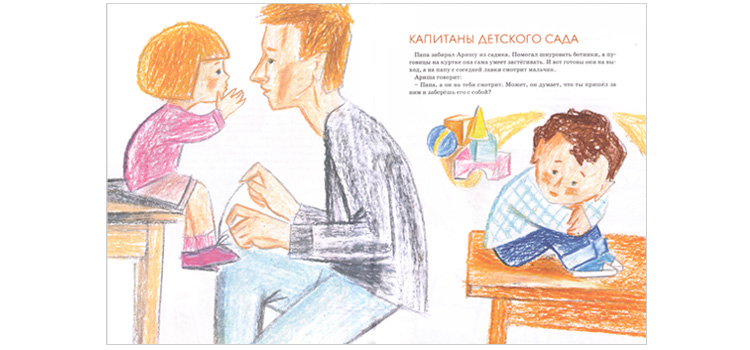 А чем заканчивается детсадовский день? Тем, что тебя забирают последним… Как пережить эту ситуацию, победить разрушительное чувство заброшенности, покинутости, «забытости»? Выход из этой трудной ситуации рождается в мудрой и веселой голове Аришкиного папы: Пашу (которого пока не забрали) надо назначить капитаном детского сада! Ведь капитан всегда покидает корабль последним! Теперь Паша – не изгой, а совсем наоборот, предмет зависти остальных детей. Ведь всем хочется быть капитанами!