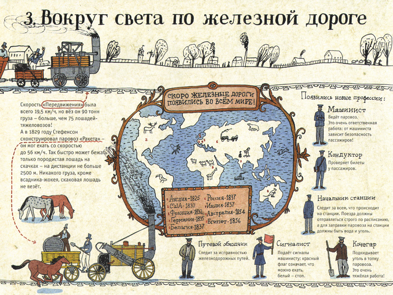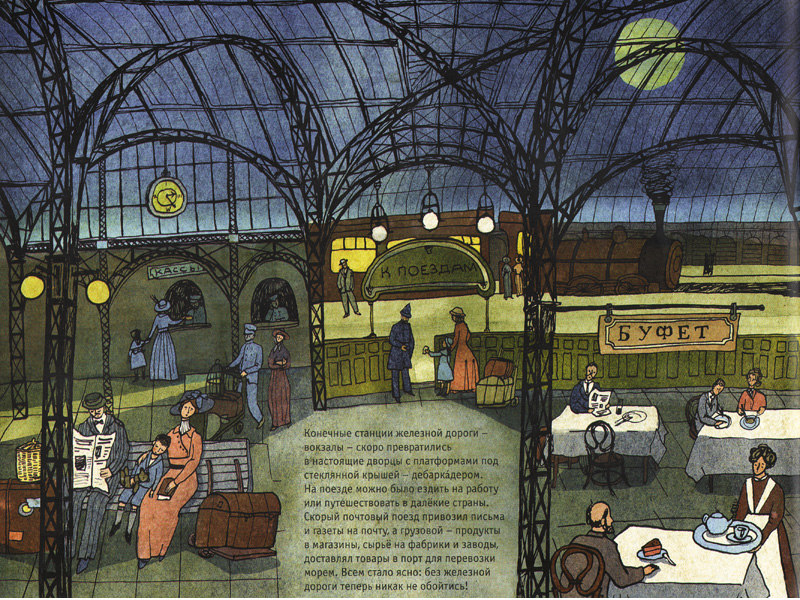Читатели перенесутся в прошлое, одновременно побывают и на лондонской улице XIX столетия и в Москве 1920-х годов, прокатятся в первом пассажирском вагоне и санитарном поезде, совершат путешествия через Альпы и под Ла-Маншем, спустятся на станции лондонского, московского и петербургского метро.