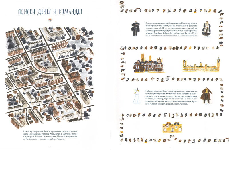 Британский художник Уильям Грилл пересказал эту историю детям, украсив ее потрясающими иллюстрациями. Вы сможете рассмотреть всех участников команды и устройство корабля, карту путешествия, снаряжение и провизию, собачьи упряжки - иллюстрации с документальной точностью воссоздают мельчайшие детали экспедиции. А удивительная графика (иллюстратор работал цветными карандашами) и яркие, контрастные цвета передают атмосферу арктического приключения.