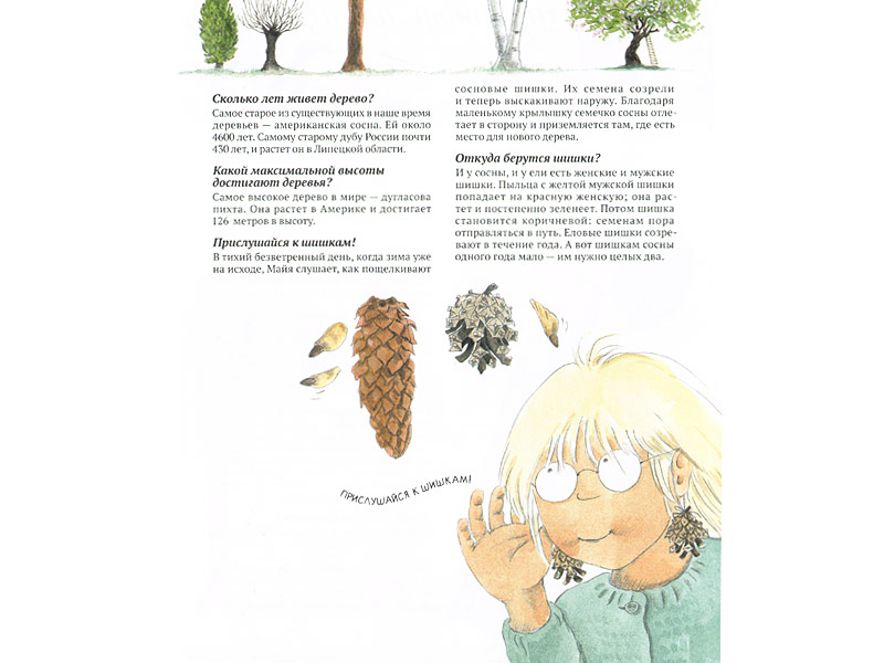 Замечательный шведский путеводитель по лесам, полям и берегам. Проводником в мире животных и растений выступает девочка Майя - она наблюдает за природой круглый год и отлично знает, чем отличается лесная мышь от мыши-полевки, почему спящие птицы не падают с веток, где зимуют пчелы, как поступают зайцы со своим пометом и как можно сделать подводный бинокль, поймать окуня и приготовить клевер с кефиром.