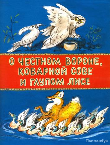 Персонаж первой сказки - ворон - трудолюбивый и ответственный. Он аккуратно разрисовал сову красивыми чёрными пятнышками, в душе надеясь на то, что сова тоже сделает его красавцем. Однако коварная и нетерпеливая сова, недолго думая, сделала ворона чёрным с головы до хвоста.