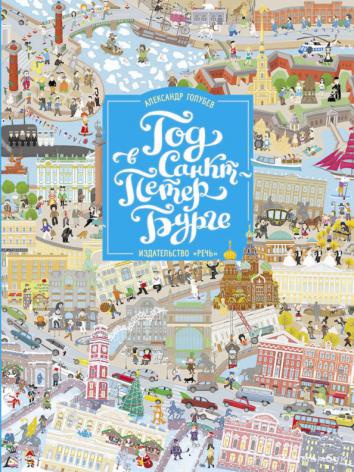 На каждом развороте этой книги изображен месяц из жизни Санкт-Петербурга. Читателю - и маленькому, и взрослому - предлагается найти на нём загаданных художником персонажей и предметы, а также посмотреть, как меняется город от сезона к сезону, разглядеть все улицы, памятники и здания и найти на каждом развороте постоянных персонажей, путешествующих по городу: Пушкина и Гоголя, Петра I и Кота Батона, Человека рассеянного и Почтальона с толстой сумкой на ремне, и других.