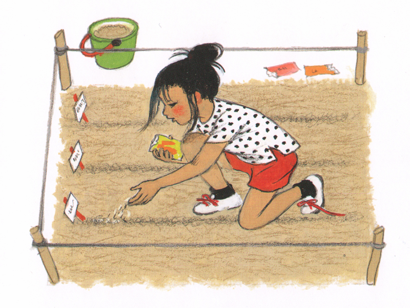 Эту книгу хорошо дополняет другая книга Герды Мюллер, "Как растут овощи?", наглядно и в игровой форме рассказывающая детям о выращивании овощей на садовом участке или в огороде.