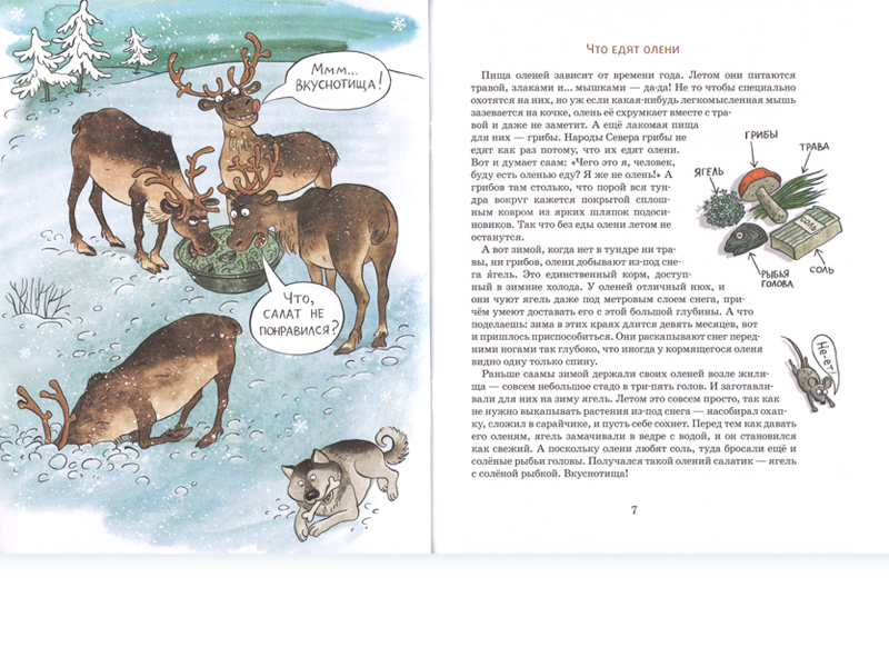 Из этой интересной книжки читатель многое узнает о северных оленях и о природе тундры, где обитает "зверь-вездеход", без которого невозможно представить жизнь народов Русского Севера. Автор живо и обстоятельно рассказывает о том, что едят олени, как их пасут, как растут оленята, кто помогает пастухам, что такое оленьи упряжки и какое значение имеют рога оленей. Отдельная глава посвящена событиям войны, когда "олений десант" на полуостров Рыбачий помог одолеть немецко-фашистских захватчиков.