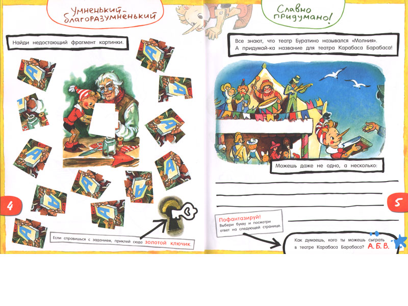Сказка не заканчивается на последней странице любимой книги, она продолжается здесь! Серия "Играй в книгу!", разработанная по мотивам лучших произведений детской литературы, учит ребёнка читать внимательно и развивает фантазию. Она формирует творческий подход к тексту, открывая тем самым совершенно новый уровень чтения. Теперь так легко оказаться в мире знакомых героев, ещё раз пережить самые захватывающие моменты и даже придумать то, о чём не рассказал автор (наверное, он просто забыл). Почтеннейшая публика! Спешите видеть! Книга-игра для внимательных читателей! Невероятные открытия и приключения в семи действиях. "Ччччудные картинки" - придумывай и дорисовывай. "Крекс, фекс, пекс" - ужжжасно веселые превращения. "Займемся арифметикой" - нескучный счет. "Страшные приключения", "Всякие смешные слова" и "Умненький-благоразумненький" - головоломки, кроссворды и задания из жизни деревянных человечков. "Славно придумано!" - фантазируй власть. Наклейки, бумажные куклы и диплом профессора кукольных наук. А также увлекательнейшая викторина-сюрприз, игра "Битва у Итальянской Сосны" и простор для фантазии впридачу! Для детей 7-9 лет.