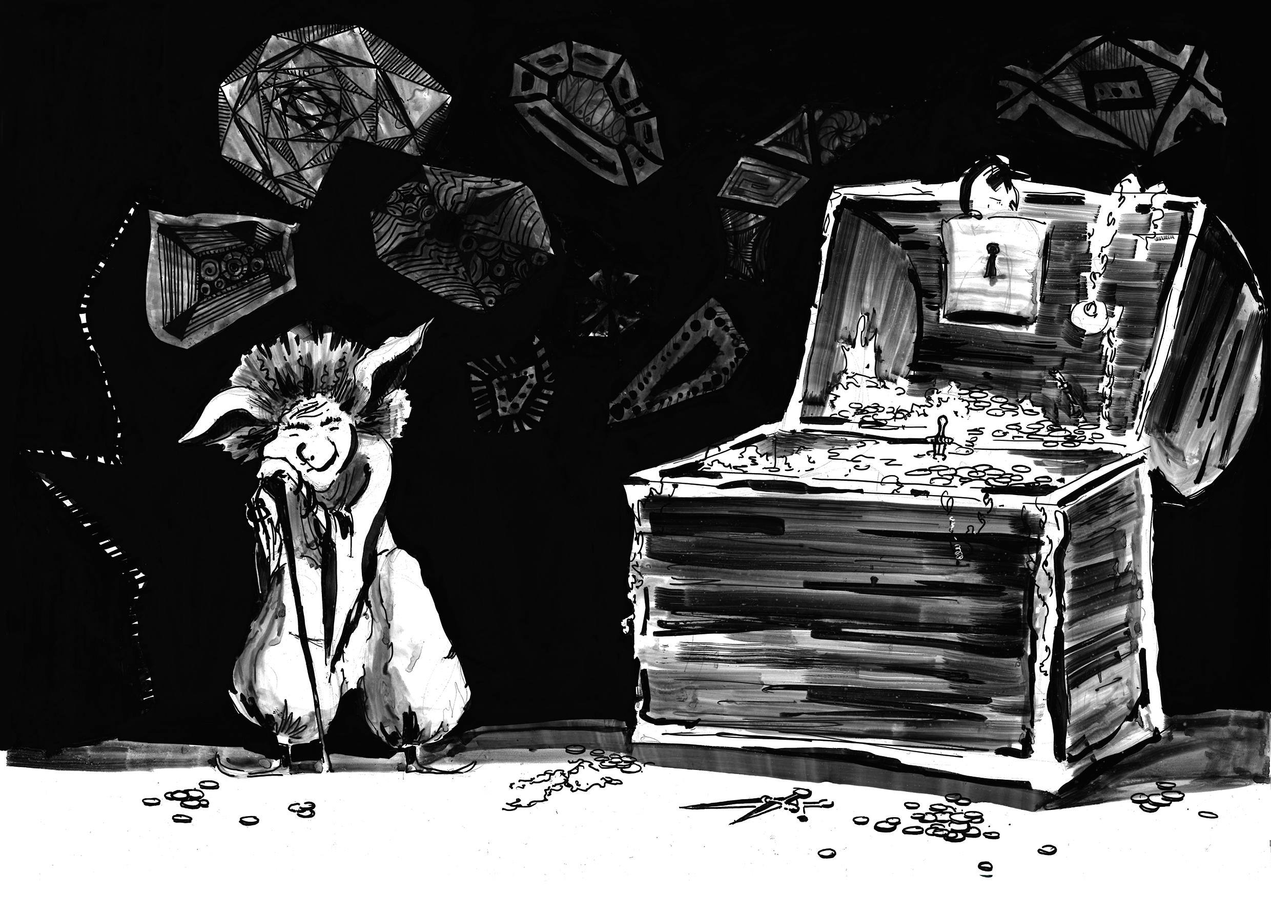 Веками лежал он в мрачных горных чертогах и стерёг богатства: серебро, золото и драгоценные камни. Своим сиянием груды сокровищ озаряли тёмные своды, а когда тролль шевелился, раздавался звон золотых монет.