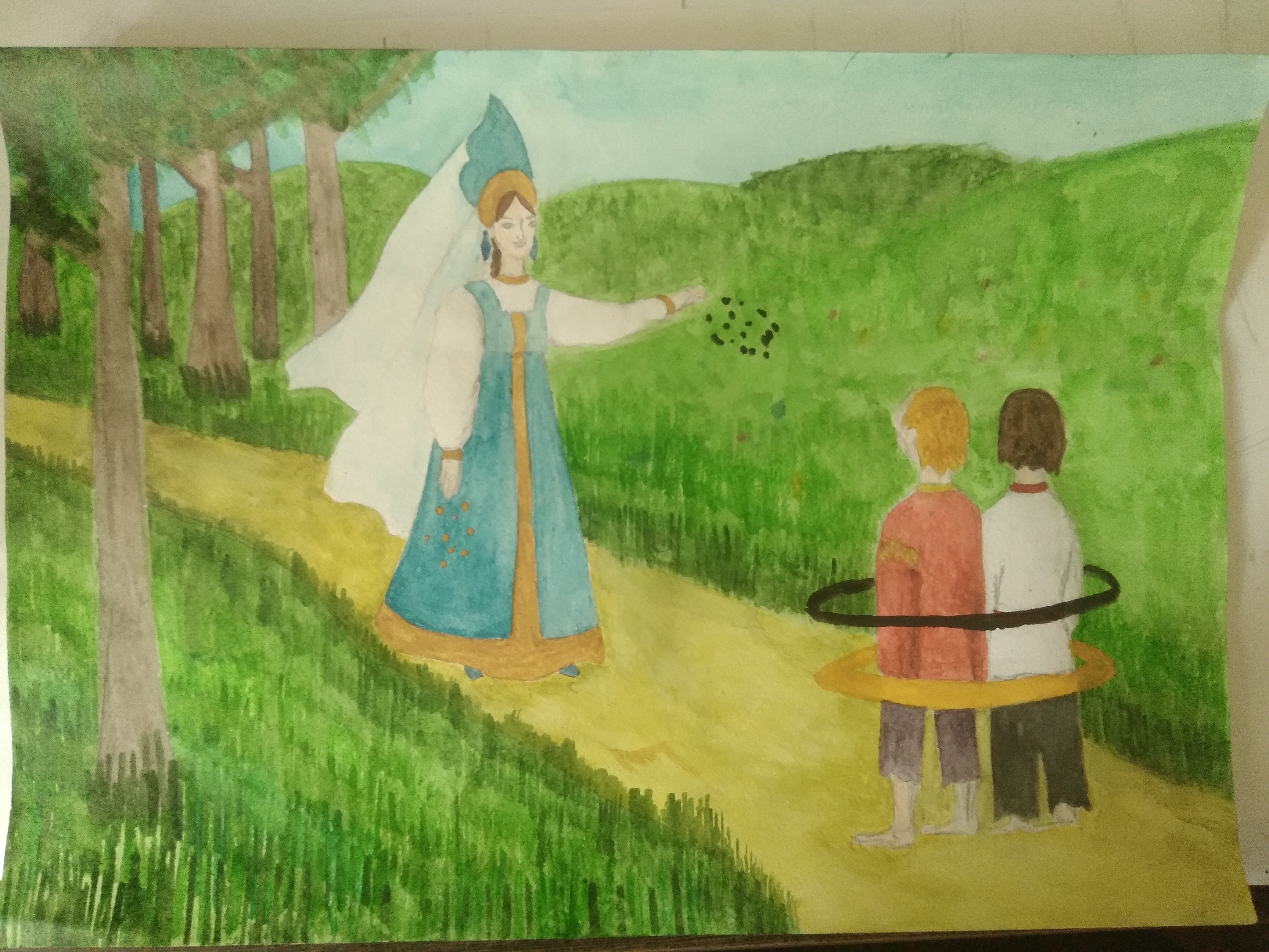 Акварель, гуашь, простой карандаш, бумага для акварели.