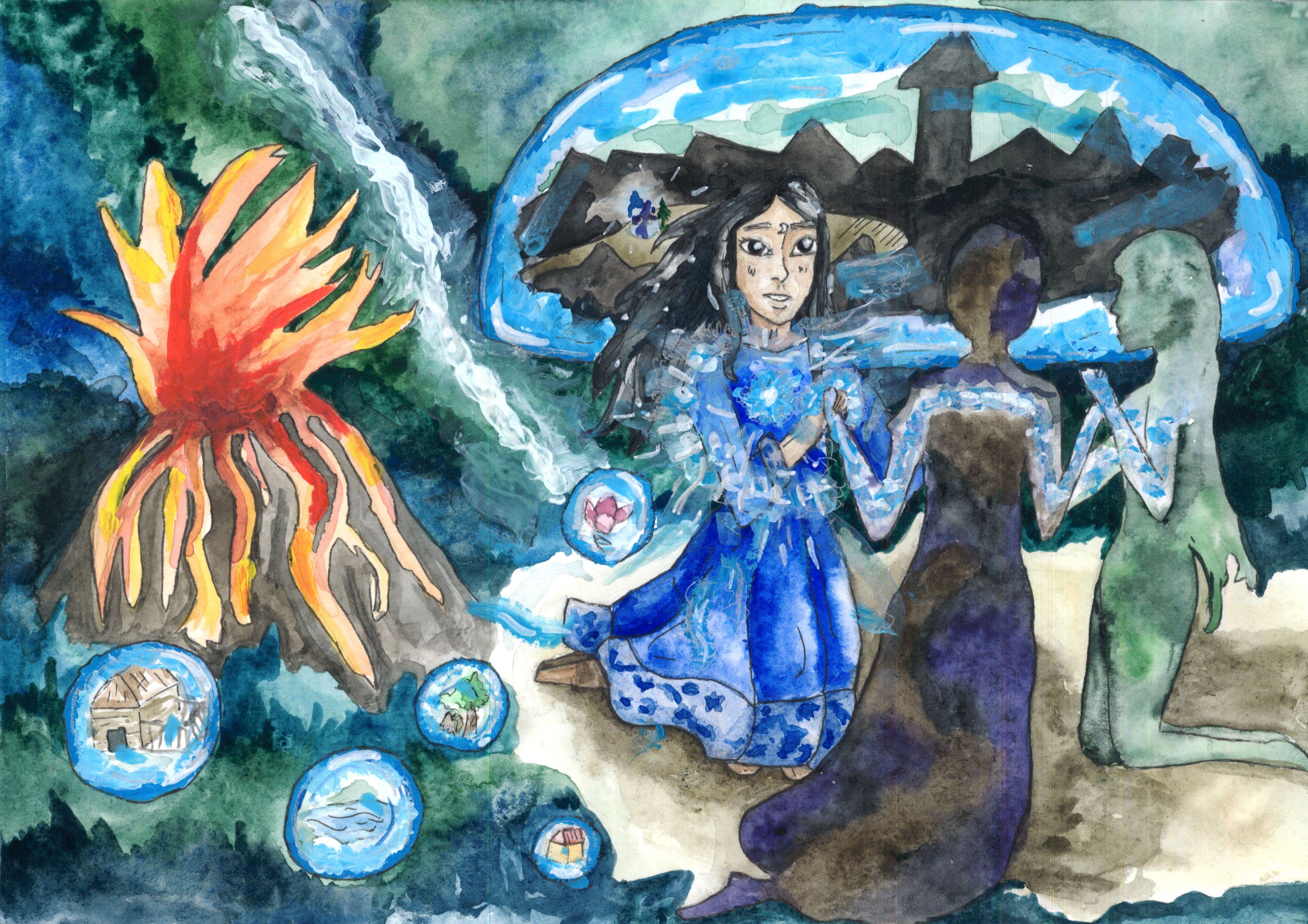 Материалы: акварельная бумага, акварель, элементы акрила, гелевые ручки.