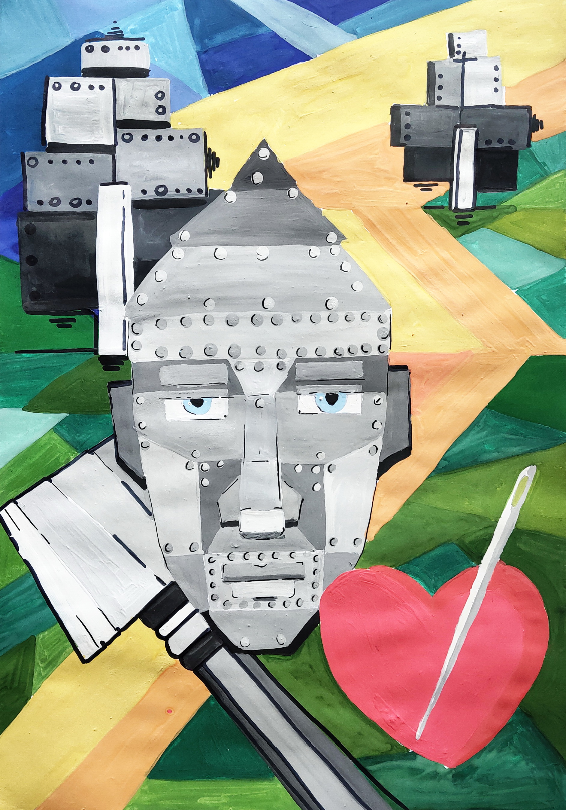 Элли с Тотошкой убежали, а Страшила ходил вокруг Железного Дровосека и с любопытством рассматривал его.