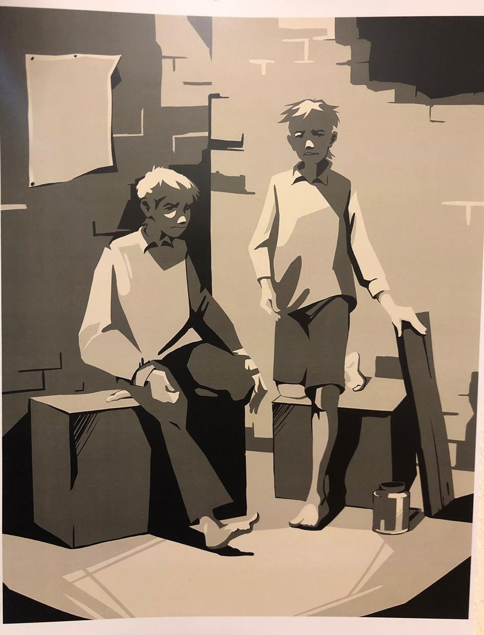 — Ешьте тут, вот ложки. По цеху не шлундать! Ясно? — Братья кивнули, уставясь на банку. Уходя, тетка Зина пояснила: — Это икра… Баклажанной прозывается. Ее бы по-нормальному с хлепцем, да хлепца-то нету. Без хлепца, значит…"