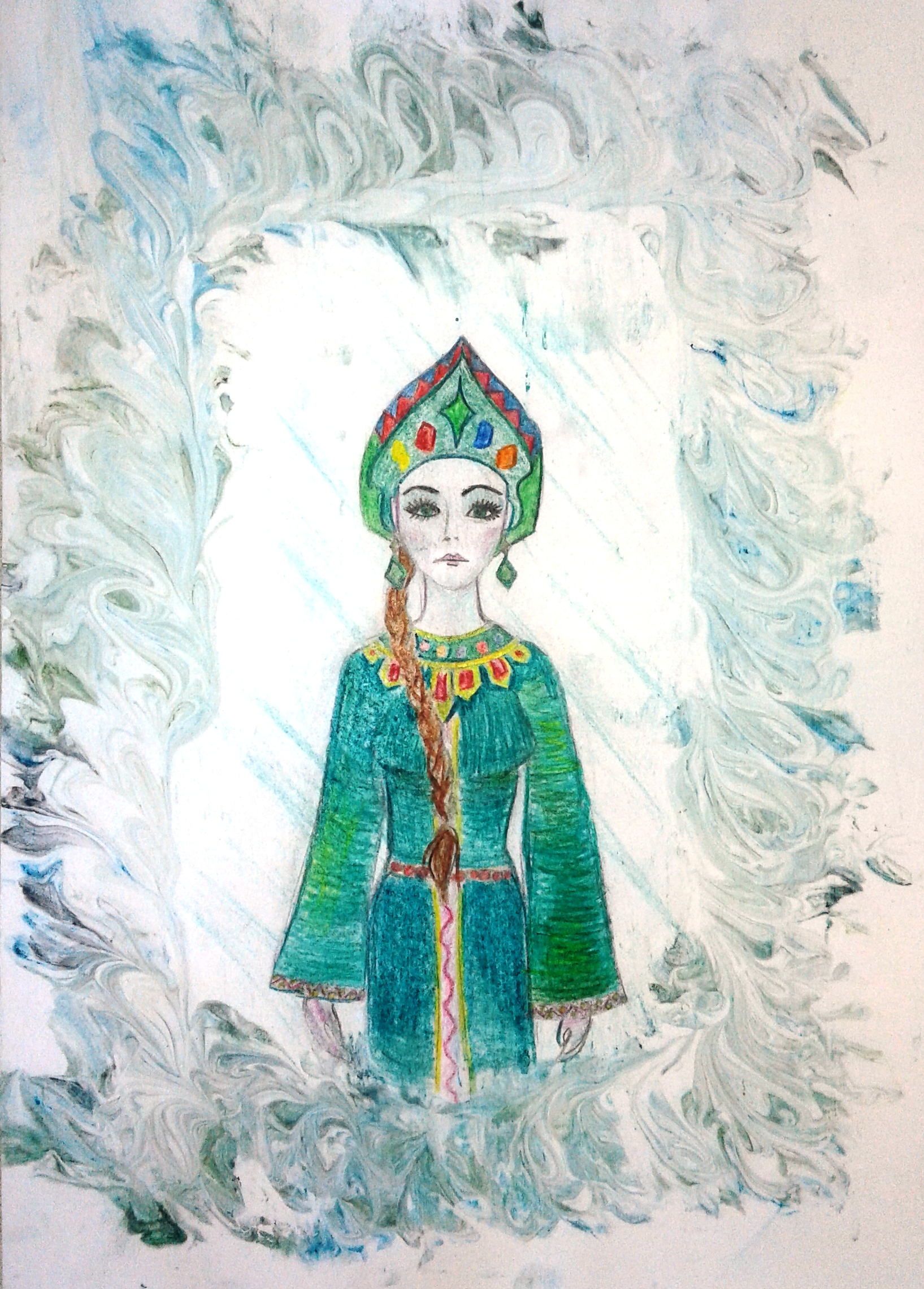 С этим словом прислонилась к стенке малахитовой и растаяла. Только и осталось, что на стенке камни сверкают, как прилипли к тем местам, где голова была, шея, руки.