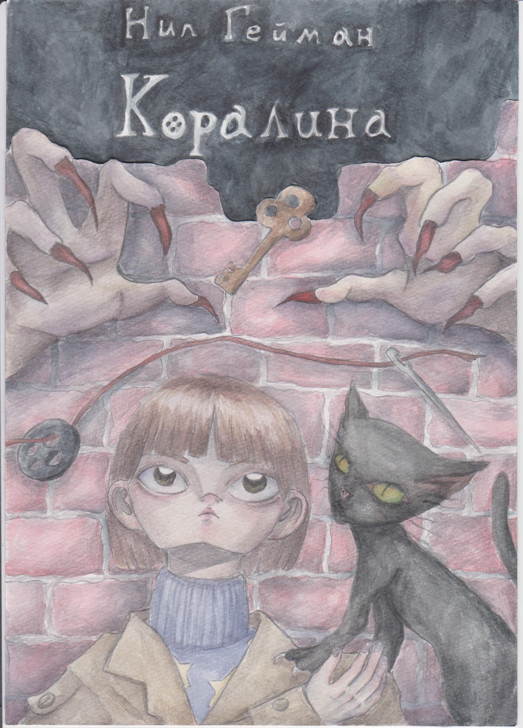 Я решила нарисовать обложку книги и показать - какими я представляла персонажей: девочку Коралину и кота