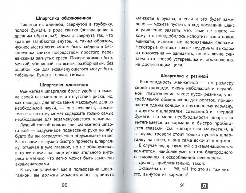Также в этом трактате представлены и описаны всевозможные виды шпаргалок – от шпаргалок обыкновенных до шпаргалок подошвенных.