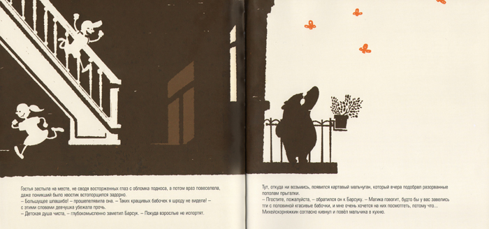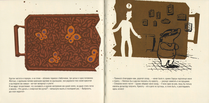 Книжка эта необычная, какая-то даже не совсем детская, хотя и включена в список выдающихся детских книг мира, ежегодно составляемый Мюнхенской международной детской библиотекой. Многих взрослых она при первой встрече отпугивает неожиданно странным, каким-то постмодернистским заголовком и черно-белыми картинками – вроде бы детская книжка должна быть яркой и привлекательной. Но что-то в этом названии притягивает ребенка. А черно-белые картинки совсем не помешали ни Ане, ни даже Макару полюбить главного героя, философа-барсука Михея Скорняжкина, страстного собирателя бабочек. Он немножко странный, замкнутый, молчаливый, самодостаточный, но тем почему-то и оказывается интересен. Он один из всех своих соседей умеет видеть необычное посреди ежедневной обыденности.