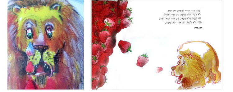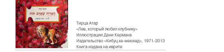 Никто не помнит, когда и как у нас появилась эта небольшая книжка. Мои дети, живущие в Израиле, девятилетний Лион и семилетняя Шелли, доверительно сообщили мне как-то, что скорее всего они с ней родились. «Наверное, это бесплатное приложение к каждому родившемуся ребенку», – сострил сын. «Мы читали ее в животике, чтобы не было скучно», – версия более романтичной дочки. Тирца Атар и ее замечательный «Лев, который любил клубнику» ‒ двенадцать страниц веселых иллюстраций и простой, но очень лаконичный текст ‒ покорили не только моих детей.