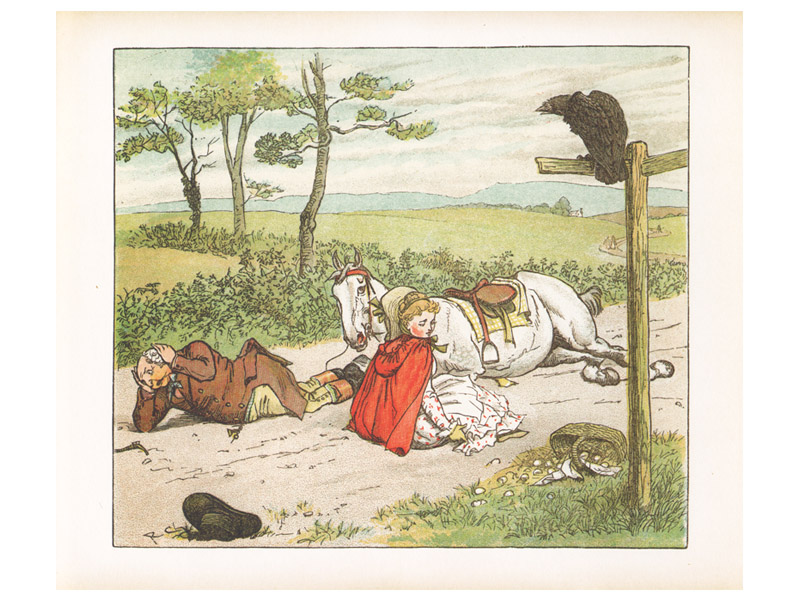 Восторг ценителей понятен: шедевр – он и есть шедевр. Можно говорить об изящных линиях, динамичном рисунке, удивительной выразительности персонажей, о виртуозном чередовании цветной иллюстрации и черно-белого графического рисунка, которое создает особый ритм повествования. Но главное – это, конечно, энергетика рисования, точнее – рисованного повествования, которое не дает зрителю оторваться и возбуждает одновременно два противоречивых желания: с одной стороны, хочется долго-долго разглядывать каждый разворот, каждую иллюстрацию, с другой стороны – скорее перевернуть страницу, чтобы узнать продолжение событий. И как любой выдающийся иллюстратор, Кальдекотт рассказывает историю, параллельную той, что изложена словами. Это не значит, что рисунок не соответствует тексту. Но художник своей работой усложняет текст, задает ему дополнительное измерение.