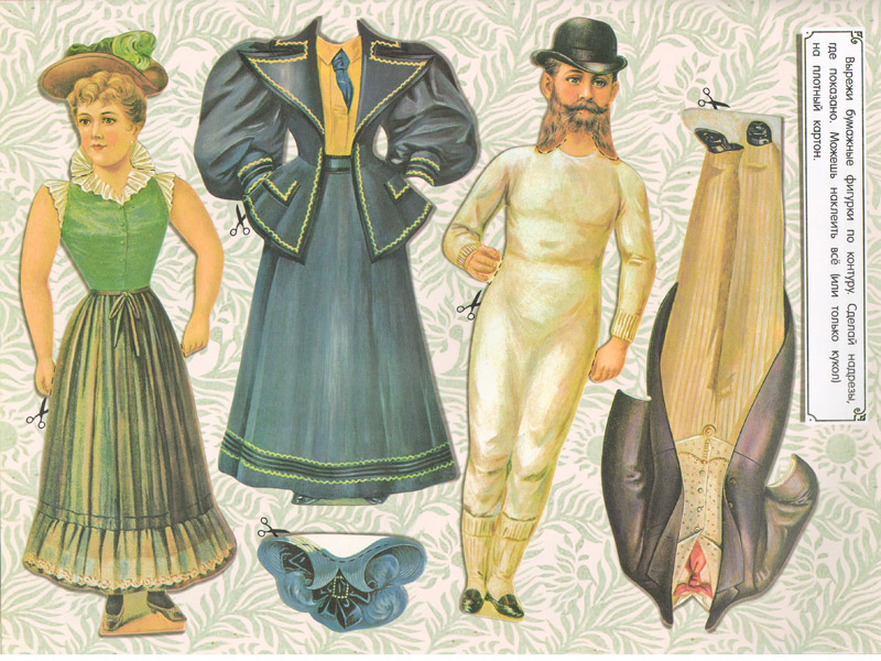 А еще практически все дети младшего школьного возраста обожают наклейки – обмениваются ими, дарят, заводят целые альбомы. Создателями книги на этом детском интересе выстроена серьезная познавательная линия. Наклеивая видовые открытки британских колоний, даже семилетний ребенок с легкостью запомнит, как они называются и где находятся. Наклеивая марки стоимостью в несколько пенсов или шиллингов – познакомится с английской финансовой системой и потренируется в счете. А для тех, кому не хочется интеллектуальных забав, а хочется просто поиграть, существует театр теней, актеры для которого «делаются» из собственных рук (образцы-инструкции, как изобразить лебедя, слона, черепаху и даже человека, имеются на страничке «Викторианские забавы. Ручные тени»). Предлагаются также бумажные куклы юных леди и джентльмена в традиционных викторианских нарядах – вырезай и играй в свое удовольствие. Или вот, например, тауматорп. Это оптическая игрушка – вертушка на веревочке, которую каждый мальчик сможет смастерить самостоятельно.