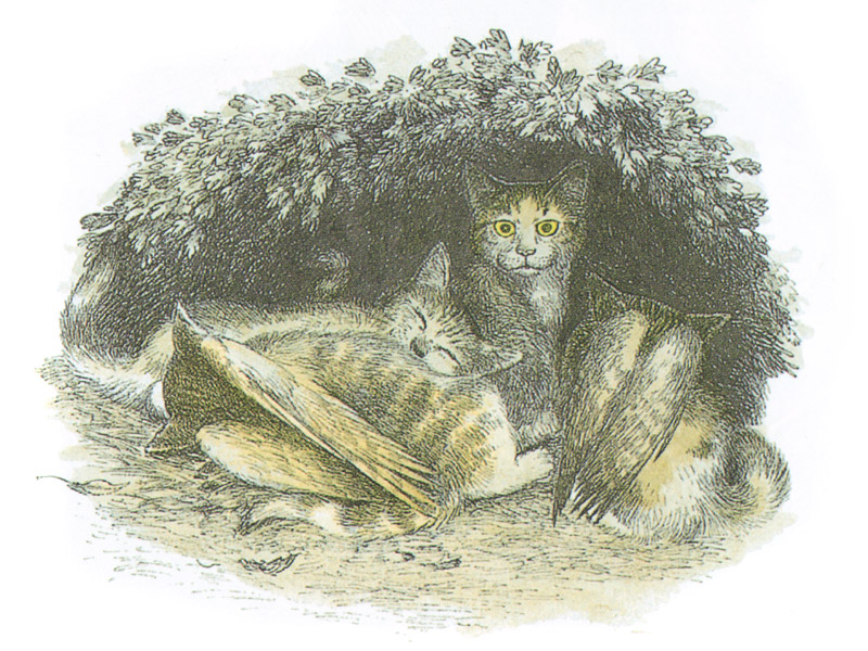 У котят все сложилось хорошо, так и должно быть в детской книге. С Ксюшей тоже все было в порядке, к концу книги она уже смеялась от радости за котят, правда пока еще сквозь слезы, и несколько раз просила перечитать фрагмент о знакомстве человеческих детей Сьюзен и Хэнка с Харриет, Джеймсом, Роджером и Тельмой (котят зовут вполне по-человечески, и было бы очень странно, если бы их звали Муркой, Барсиком или какими-то другими кошачьими именами). Особенно Ксюше понравилось, как Сьюзен подзывала котят: «Киса. Кис-кис-кис-мяу. Котенок-котик. Котеночек-крылатка. Крылокотик. Котокрылик!»