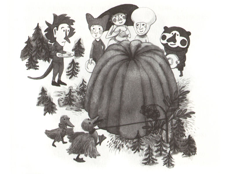 «Основная пятерка» жителей Приречной страны – Простодурсен, Сдобсен, Ковригсен, Октава и Пронырсен. Жизнь этого народца несуетлива и предсказуема, поэтому каждое выходящее за рамки повседневности событие претендует на статус «великого». Подобным же образом рассматривает свой уютный мирок маленький ребенок, бесконечно удивляясь любому его изменению. В первой, осенней книге главным и во многом поворотным событием становится утиное яйцо, «вошедшее в жизнь» всех героев книги. «Полоски, пятна и лоскутки солнца беспорядочно были разбросаны по всему дому, один крупный квадрат упал точно на яйцо. С которым что-то творилось. Яйцо шевелилось…»