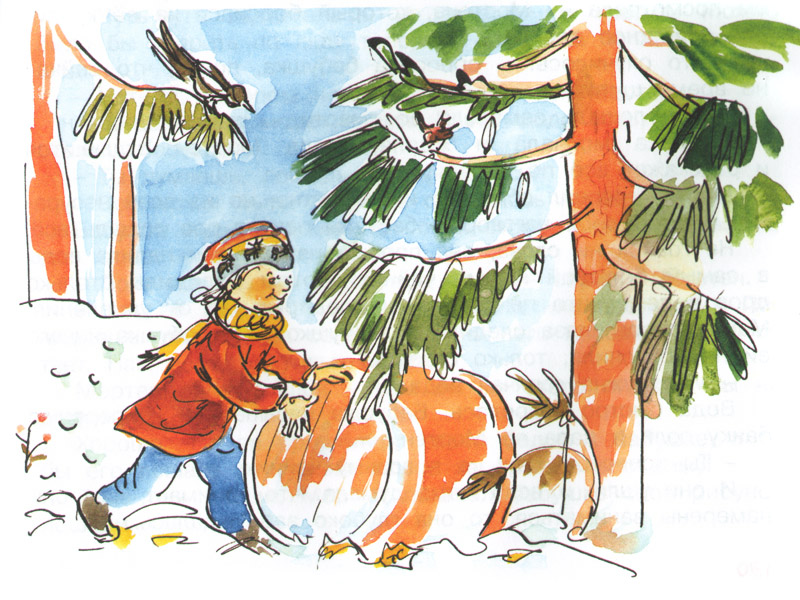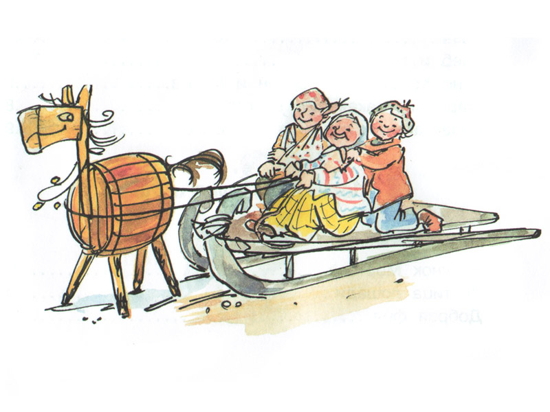 Эпизод, где Мортен зовет бабушку на помощь, написан с мягким юмором (как и многие другие в повестях об этой многодетной семье). Так что когда внук кричит бабушке: «Моя лошадь замерзла до смерти!» – дети смеются, они-то знают, что речь идет всего лишь о деревянной бочке, которая является лошадью только в воображении Мортена.