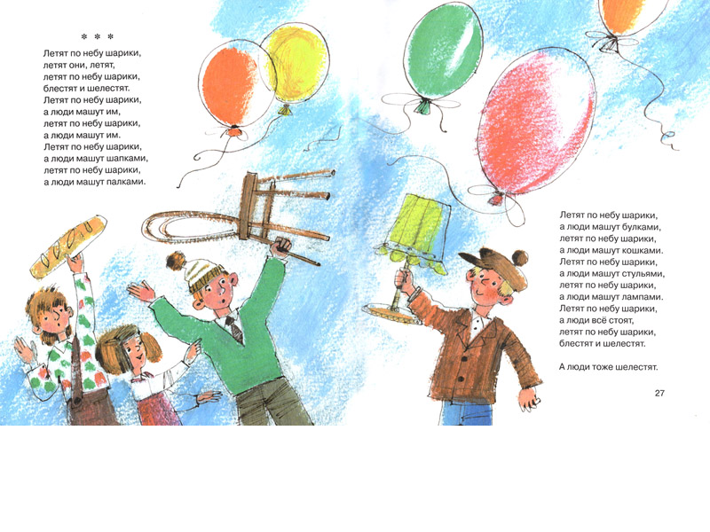 Семилетний Алик обожает стихотворение Хармса «Летят по небу шарики». Вот казалось бы ‒ никакого сюжета здесь нет. Ну летят себе шарики и летят, и летят... Да и рифма здесь тоже весьма условная. Но зато в этом стихотворении есть удивительный ритм, который словно подталкивает, нет, поддувает нам в помощь: