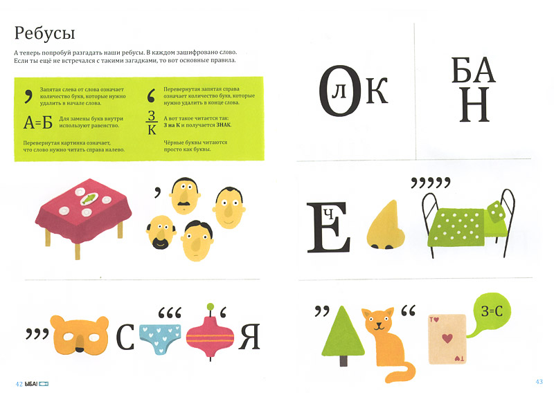 – В детстве мне в руки попала подшивка старых журналов «Наука и жизнь». Там на последних разворотах были страницы со всякими ребусами, загадками и детективными комиксами. Мне все это страшно нравилось. И я эти странички вырывал и делал из них свой журнал. Но этого мне было мало. Я еще и хотел придумывать свои собственные задания – какие-нибудь хитрые лабиринты и загадки. И чтобы потом их кто-нибудь разгадывал. А это все летом на даче происходило. И вот придумаю я лабиринт – и потом мучаю бабушку с дедушкой, чтобы они разгадывали. Другой аудитории у меня там не было – только дедушка с бабушкой. Ну, еще собаки. Но они точно на роль отгадывающих не годились. Когда я делал «ЫБУ», я подумал, что именно о такой книге мечтал в детстве.