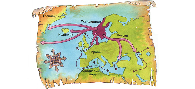 Кстати, способ подачи новой информации в этой небольшой книжке тоже адекватен мировосприятию активного, здорового семилетки, который вечно куда-то спешит, у которого тысяча планов и проектов, один грандиознее другого, и у него просто нет времени на чтение длинных текстов. Зато есть огромная жажда познания всего и сразу, причем из совершенно разных областей одновременно. Поэтому формат комиксов оказывается востребованным – небольшие интересные тексты и яркие рисунки запоминаются сходу. В комиксе Эндрю Лэнгли есть краткие и вполне толковые исторические справки о жизни викингов, и понятные карты, указывающие направление их экспедиций и территории расселения. Эти карты сразу привлекают мальчишеское внимание. Многие дети лет с шести сами рисуют разного рода схематичные карты, по которым прячут свои клады или играют в «казаки-разбойники», и поэтому очень любят разглядывать карты, особенно если есть к ним картинки.