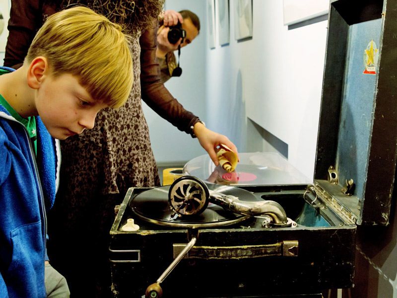 Вместе с трамваями Кликом и Трамом дети совершили увлекательное «фотопутешествие» и увидели, каким был Петербург почти сто лет назад. Почувствовать атмосферу эпохи помогали костюмы ведущих в стиле 1920-х годов, классические джазовые композиции, звучащие на патефоне, и старинный фотоаппарат с подвижным объективом на «гармошке» в витрине музея. Кстати, он напоминал о другом «детском» стихотворении Мандельштама: