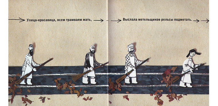 На иллюстрациях Анны Десницкой, выполненных с большим вниманием к деталям городского быта, и фотографиях Ленинграда 1920-х годов мы видим извозчичью повозку, грузовик и старинные легковые автомобили. А также «метельщиков» в фартуках, красноармейцев в шинелях и будёновках, детей в матросских воротничках, модниц в платьях с заниженной талией и шляпах-колокольцах поверх стрижки «alla garcon» («по-мальчишески»), и т.д.