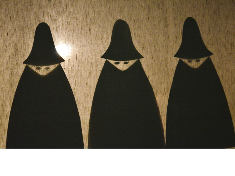 Жили-были «три свирепых разбойника», и по ночам они занимались грабежом, скрываясь под черными плащами и высокими черными колпаками. На иллюстрациях к книге – черные лаконичные силуэты героев на голубом фоне и огромный диск луны. Да это же почти театр теней!