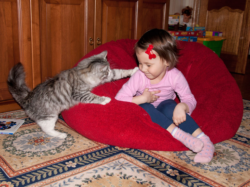 И опять магическое слово ‒ теперь это имя кота «Валерьян». Ксюша опять и опять спрашивает: «Как, как его зовут?..» ‒ и с удивлением, осторожностью повторяет: «Валерьян» (у нее получается «Балерян» ‒ да, непростое слово во всех отношениях).
