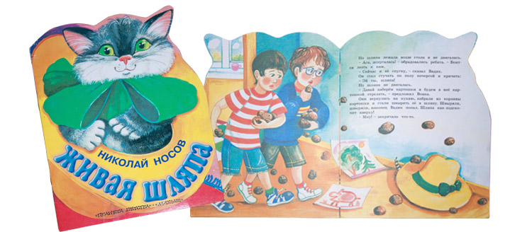 Я решила поискать что-нибудь новенькое нам с Ксюшей для чтения и общения, забралась на стул, в надежде добраться до верхних полок шкафа, где хранятся книжки, из которых вырос сын, и едва приоткрыла дверки, как мимо меня пролетела какая-то книга, приземлившись прямо под ноги Ксюше. Увидев, что это «Живая шляпа» Николая Носова, я закончила едва начавшиеся поиски. Если книга сама себя предлагает, было бы несправедливо не откликнуться. А Ксюша быстренько завладела добычей, и минут 15 ее не было слышно – рассматривала иллюстрации. Потом подошла ко мне с книжкой в руках и уверенно сказала: «Книжка про кошку». Про кошку, про мальчишек, про всех вместе, подумала я про себя. Но для нас сейчас главное, чтобы было про кошек.