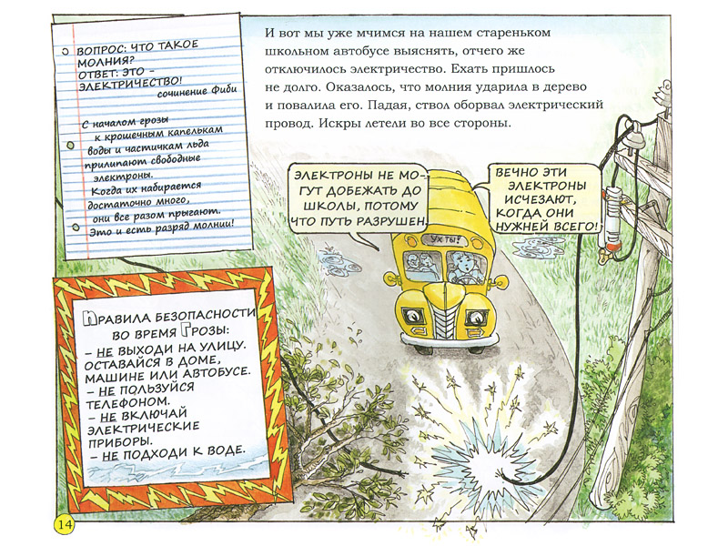 На книжках-картинках о захватывающих «автобусных» экскурсиях под руководством всезнающей учительницы мисс Кудряшки выросло не одно поколение американских детей. И вот теперь, благодаря издательству «Карьера-пресс», волшебный автобус доехал, наконец, до российских просторов и его герои заговорили о самых разных естественнонаучных явлениях на русском языке. В «автобусную» серию входит десять книжек, и каждая из них достойна того, чтобы говорить о ней отдельно. Но поскольку во всех книгах действуют одни и те же персонажи, структура в них одна и та же и принципы изложения материала одни и те же, то правильно будет представить сразу всю серию. А ребенку и родителю предоставить возможность выбирать наиболее интересные для себя темы. Хотя сделать выбор будет, конечно, непросто.