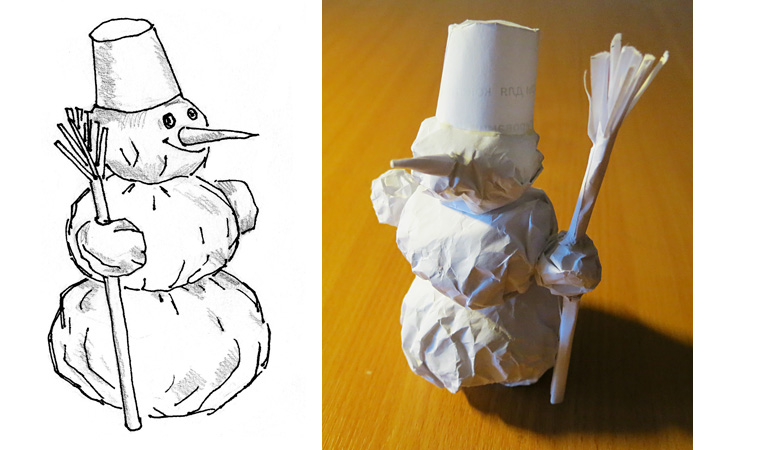 Тут тоже есть много советов и «рецептов». Мы предлагаем читателям попробовать сделать снеговиков по методике Натальи Мейстер. В основе ее методики – «лепка» из комочков бумаги.