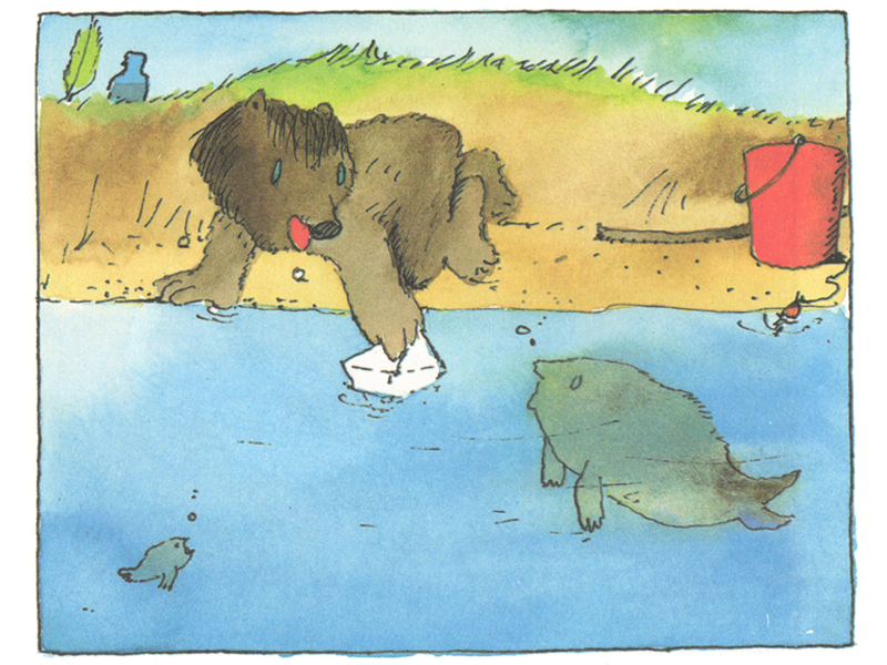 Два друга, Тигренок и Медвежонок, живут в маленьком уютном домике в лесу. Медвежонок ходит на реку удить рыбу, но его другу, как выясняется, очень без него одиноко. Настолько одиноко, что Тигренок ничего делать не может, а просто лежит на траве за домом. «Он и не думал чистить лук и варить картошку. Даже не подумал подмести пол в комнате и полить цветы. Ничего ему не хотелось делать, так он был одинок».