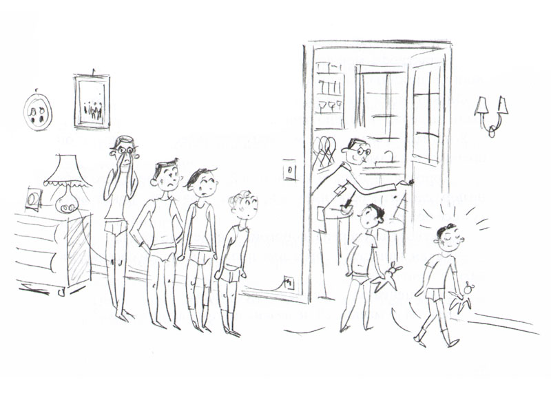 О родителях этого большого семейства хотелось бы сказать отдельно. С одной стороны, они придерживаются строгих традиционных принципов воспитания: соблюдают религиозные обычаи, строго следят за лексиконом детей, неодобрительно относятся к сидению перед телевизором. Но при этом дети постоянно ходят к знакомым смотреть телевизор, дома, несмотря на постоянные заявления отца о запрете заводить домашних животных, держат целый зверинец: черепаху, двух золотых рыбок, шиншиллу, морскую свинку (позже к ним присоединяется ещё и собака), а в семейный альбом помещают фотографию благородного изгиба спины старшего из Жанов (возможно для того, чтобы эта фотография стала вечным укором совести, ведь сделана она была тайком на пленочный фотоаппарат, обнаружена только после проявки и печати в мастерской, «героя» же так и не выявили, хотя наказали всех, – вот он, пример настоящей братской солидарности).