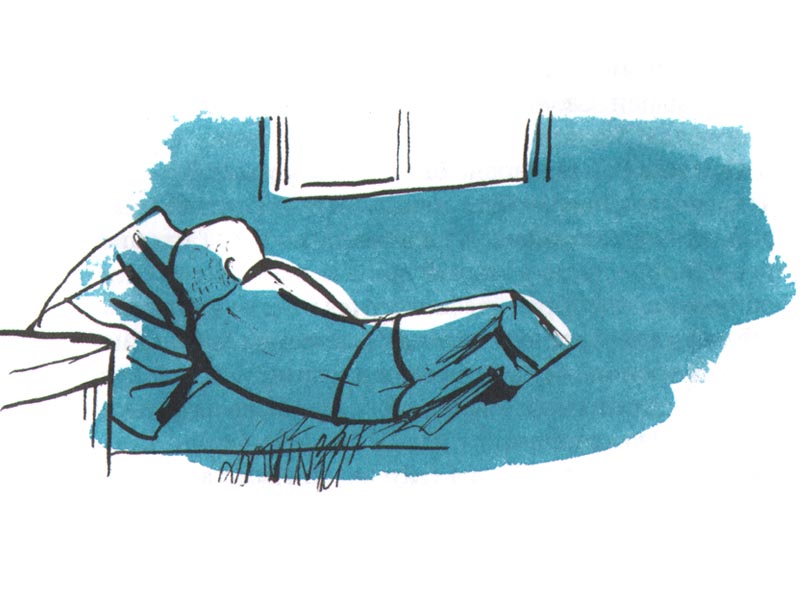Вадим Шефнер рассказывает об ушедшем, но в книге нет полнокровной жадности к деталям: к запахам, звукам, цветам и оттенкам. Этой жадности нет и в рисунках Анны Романовой, выполненных черной тушью по бирюзовой акварели и нечеткими силуэтами, легкими намеками очень хорошо передающих невесомость воспоминания. Вот в «Счастливом неудачнике» Виктор и его новая знакомая Муся сидят под яблоней. На них играют солнечные блики. Невольно начинаешь улыбаться ‒ потому что солнце, потому что лето, потому что солнечные зайчики, и никого больше нет, только одна очень красивая девочка, которая кому-то очень нравится… На другом рисунке мы видим поэта Иоанна Манящего: сидя на больничной койке, он чуть наклонился вперед, и в этом движении столько напора, что кажется, будто он прямо сейчас начнет читать свои стихи. Каждый рисунок всего лишь одной деталью подчеркивает настроение героев, и этой детали достаточно, чтобы почувствовать то же, что и герой.