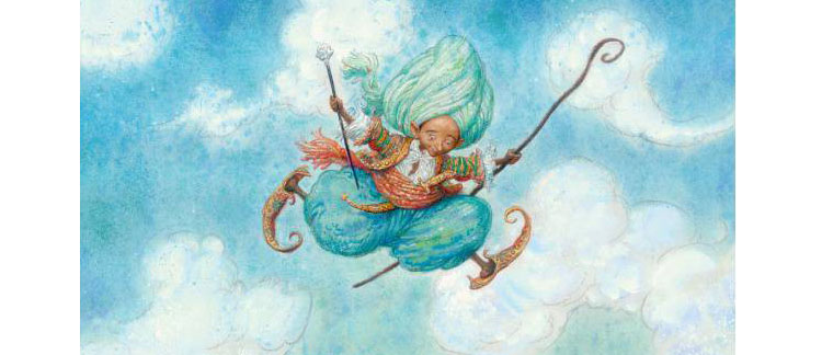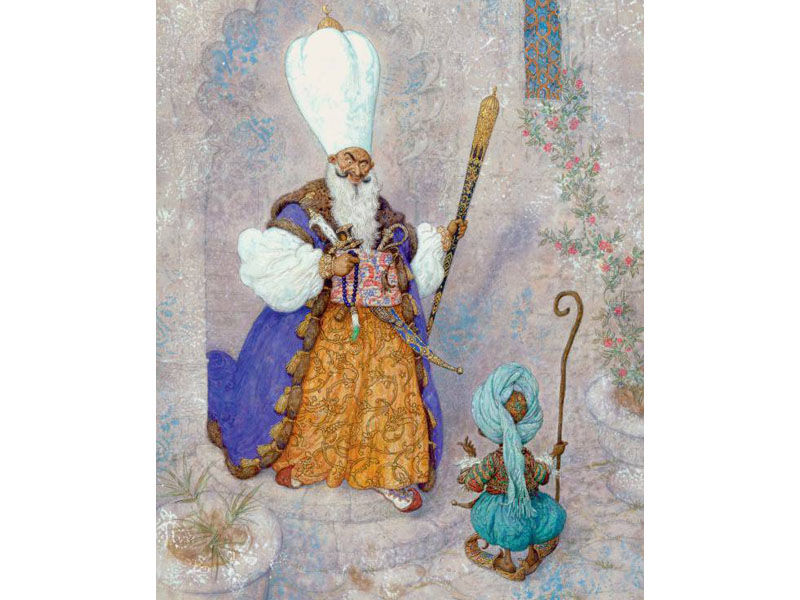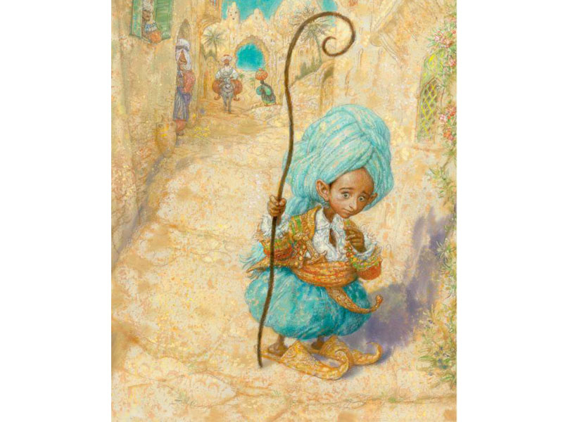 Знаменитая сказка Вильгельма Гауфа «Маленький Мук» с иллюстрациями Антона Ломаева, выпущенная не так давно издательством «Азбука», – это, на мой взгляд, случай удачного совпадения произведения и художника. Светящиеся краски, среди которых доминирует праздничная бирюза, некоторая вычурность и избыточная детализация чрезвычайно подходят этой сказке и создают настоящий восточный колорит.