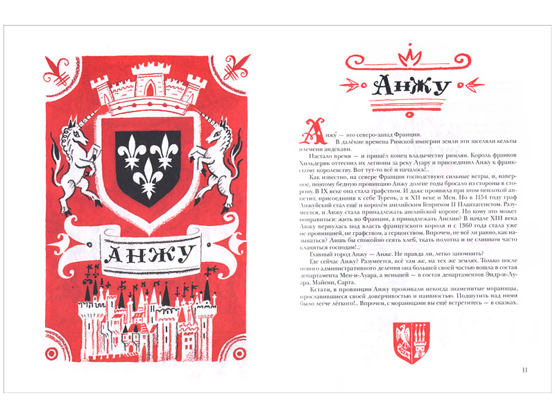 Конечно, главное в этой книге не историко-географические обзоры, а сами сказки, но соединение двух этих жанров может дать неожиданный результат. Даже если мы не поедем во Францию по-настоящему, ничто не помешает нам с детьми совершить это путешествие в воображении. Благодаря удачному подбору текстов, за несколько вечеров мы все равно почувствуем, как различаются по темпераменту и отношению к миру горячие марсельцы и доверчивые анжуйцы, хладнокровные суровые бретонцы и словоохотливые парижане.