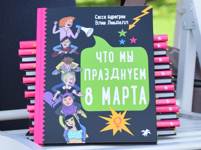 Но для «Папмабука» было важно поговорить с Сассой и Элин о феминизме в контексте детского чтения. Они написали книгу «Что мы празднуем 8 марта?». Книга адресована подросткам.